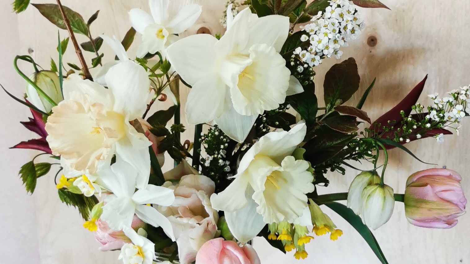 Har du inte odlat några narcisser eller tulpaner själv i år, men ändå vill få uppleva det här, så håller jag kurser under våren där vi skapar med säsongens blommor.